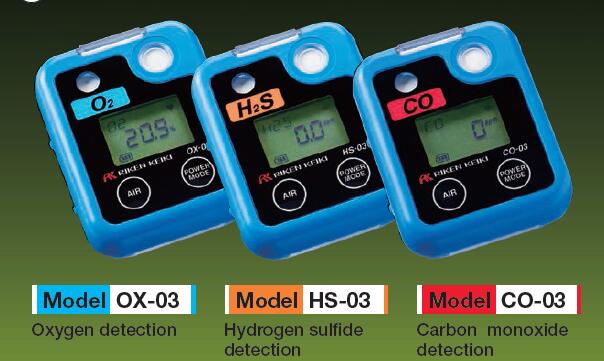 日本理研CO-03便攜式一氧化碳檢測儀的特點:實時檢測數值帶背景燈的LCD顯示屏傳感器,過濾器和電池是可更換的。堅固的防水設計和本質安全等級使03系列成為許多危險應用的氣體監測儀。