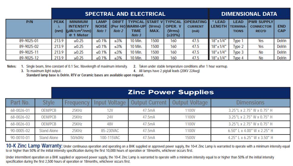 您的位置: 首頁 >> 紫外線產品 >> 紫外線燈 >> 美國BHK >> 89-9025-01美國BHK鋅燈