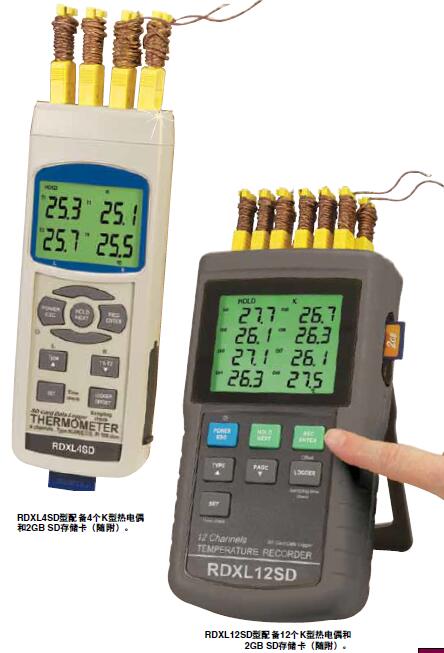 RDXL12SD美國OMEGA十二通道便攜式溫度計/溫度記錄儀,配2GB SD卡,可實時記錄數據。RDXL4SD為4通道和RDXL12SD為12通道便攜式溫度計/數據記錄器,都配SD卡數據存儲器。