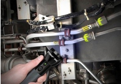 OPX-365高強度紫外線燈為美國Spectronics公司(簡稱SP公司)原裝進口,SP公司生產(chǎn)的紫外線燈廣泛應(yīng)用于不同的行業(yè)。其優(yōu)良的紫外線產(chǎn)品被獲得諾貝爾獎的科學(xué)家使用進行基因基礎(chǔ)研究。下圖為泄漏檢測: