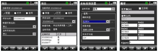 簡(jiǎn)便的項(xiàng)目配置 Ⅰ項(xiàng)目式數(shù)據(jù)采集管理方式,可按日期或自定義新建、打開(kāi)、套用項(xiàng)目; 數(shù)據(jù)字典可自動(dòng)選擇或現(xiàn)場(chǎng)新建; Ⅱ坐標(biāo)系統(tǒng)可設(shè)置專業(yè)的七參數(shù)或通用的五參數(shù),坐標(biāo)數(shù)據(jù)可選擇經(jīng)緯度或平面坐標(biāo)格式。
