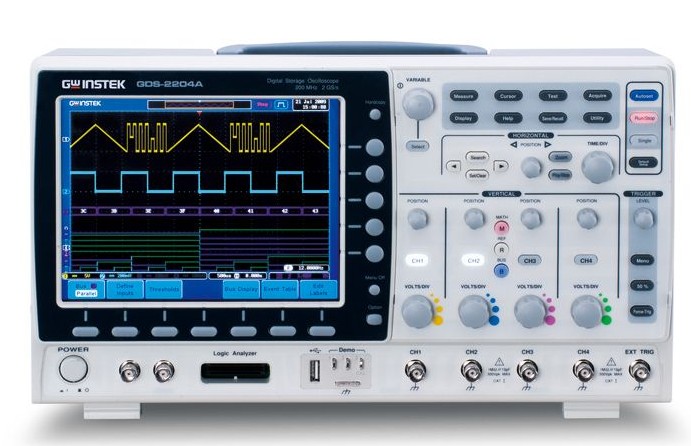 固緯GDS-2204A數字示波器具有200MHz的帶寬,4組輸入通道。2M記錄長度不僅支持長時間的波形存儲,也對后期分析提供了充足的數據支持。兩個選配搜索引擎,DS2-RSH和DS2-SGM,用于在記錄長度中搜索感興趣的波形。DS2-SRH定義了搜索的波形類型,DS2-GSM則將整個記錄長度分成若干段,僅通過瀏覽包含目標波形的段落,達到提高波形搜索速度的目的。