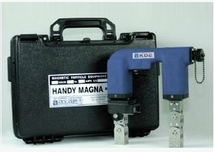 MP-A2L韓國Kyungdo(京都)磁粉探傷儀/手提式單磁軛的產(chǎn)品特點(diǎn): 1.將磁軛電纜線一端連接在磁軛的電源插座上,另一端連接到22OV的電源上。 2.兩磁極平放在被檢件上,并施加一定的壓力 3.在已打開開關(guān)的狀態(tài)下,施加磁粉。(干,濕磁粉及熒光磁粉) 4.被檢面寬,則應(yīng)作分區(qū)分段磁化,而且區(qū)與段之間要有一定的相互重疊的覆蓋面